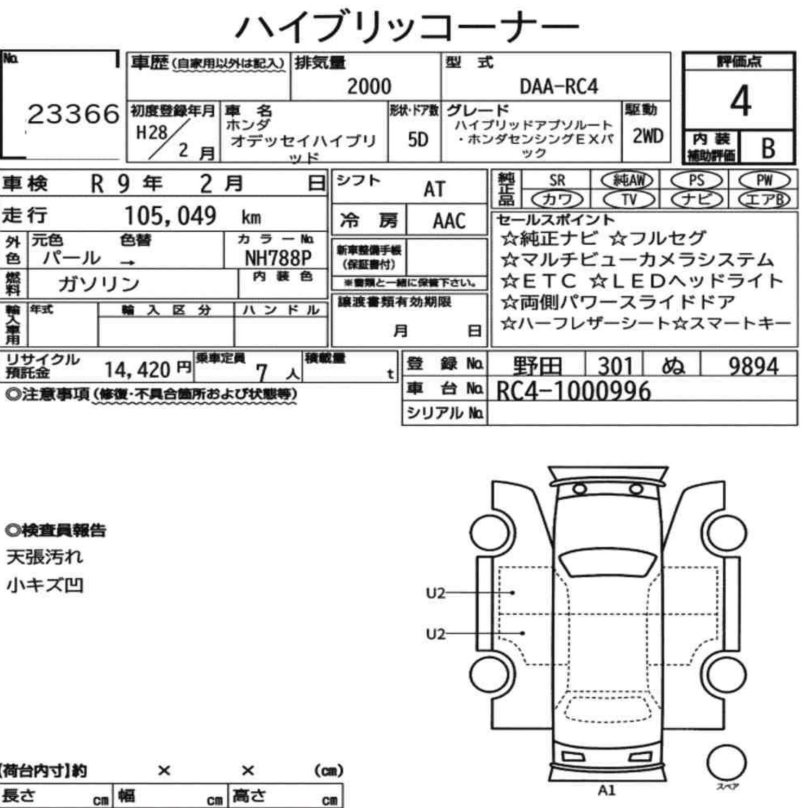 Grading reports or Japanese auction sheets are used to list the details of the vehicle and its condition. Reporting formats varies depending on the auction house that it was listed on, but generally the basic information remains the same.